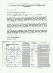 Em 08 de dezembro de 2014, enviamos ofício ao diretor do Departamento Nacional de Infraestrutura de Transportes (DNIT), juntamente com 24 folhas de assinaturas de moradores dos municípios de Monte Carmelo, Iraí de Minas e Romaria, solicitando providências em relação ao cruzamento das rodovias BR 365 com a LMG 782.